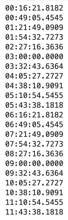 Apropos of nothing, here are the times when the hands of a clock are at right angles to each other.