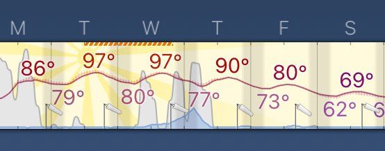 1. It’s forecast to reach 73 °F at 9:30 this morning and not fall back below that temperature until Friday evening. It’s going to be ≥ ~80 °F for 60+ hours (this afternoon–early Thursday) 🥵
