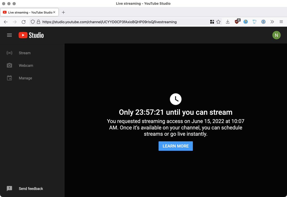 I was testing something and discovered that there’s a 24 hour waiting period before you can do your first YouTube live stream. The only reason I can think of is to prevent live streaming mass shootings. America is the worst.