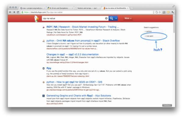 Searched for ‘rpy na value’. DuckDuckGo suggests I add ‘rick recht’ to my query. Wha‽