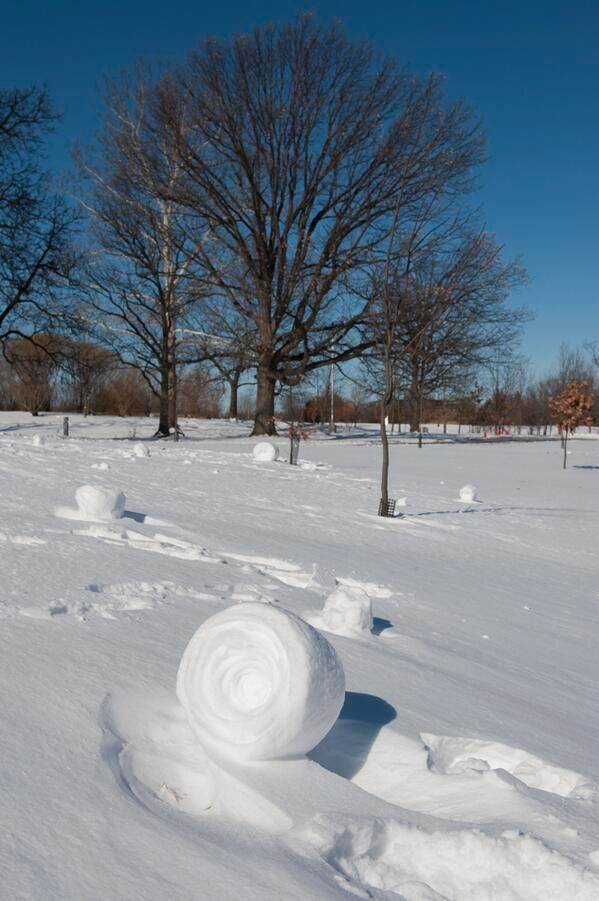 : Have you seen the "snow rollers" on campus today? A rare phenomenon when the wind rolls snow balls!