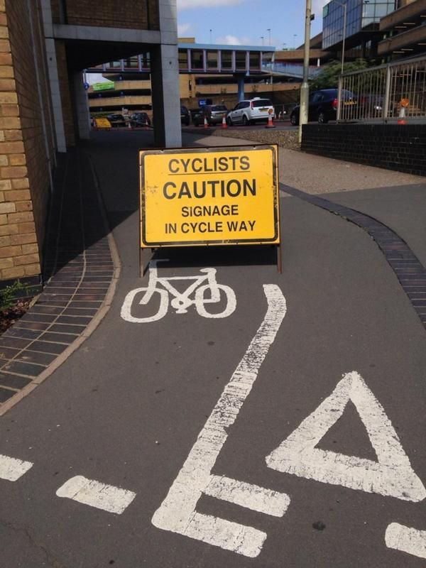 : Sign warns cyclists about itself