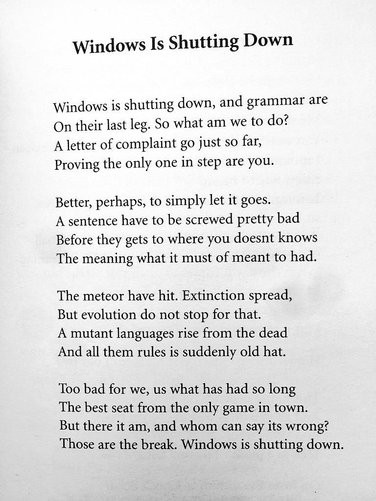 : Clive James, Windows Is Shutting Down. I howled with laughter first time I read it. Absolute genius.