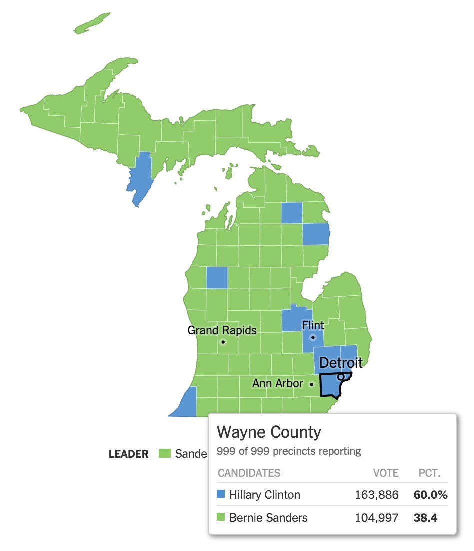 I didn’t realize the how serious Bernie’s black voter problem is till I looked at Wayne county