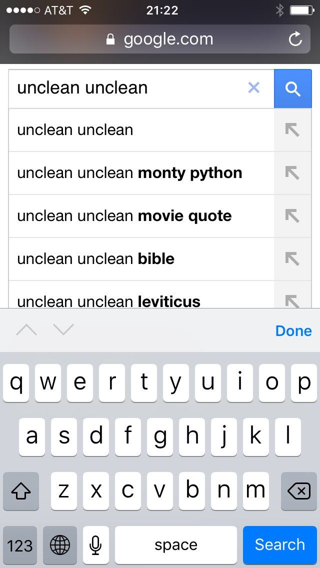 There seems to be a mass delusion that Life of Brian includes the line, “Unclean! Unclean!” But there is no such line (at least on YouTube).