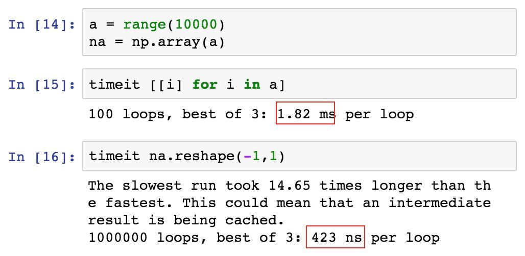 Python fun fact: [[i] for i in a] is literally 3600× slower than np.array(a).reshape(-1,1)