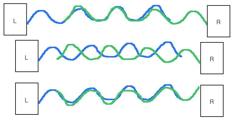 My thought is that phase at the listening pos depends on dist., not phase at each speaker. 1. in phase, pos ok 2. in, pos bad 3. out, pos ok