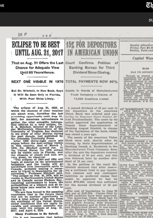 : Aug 14, 1932, NYT story. Pointing to us. Today. Here and now.