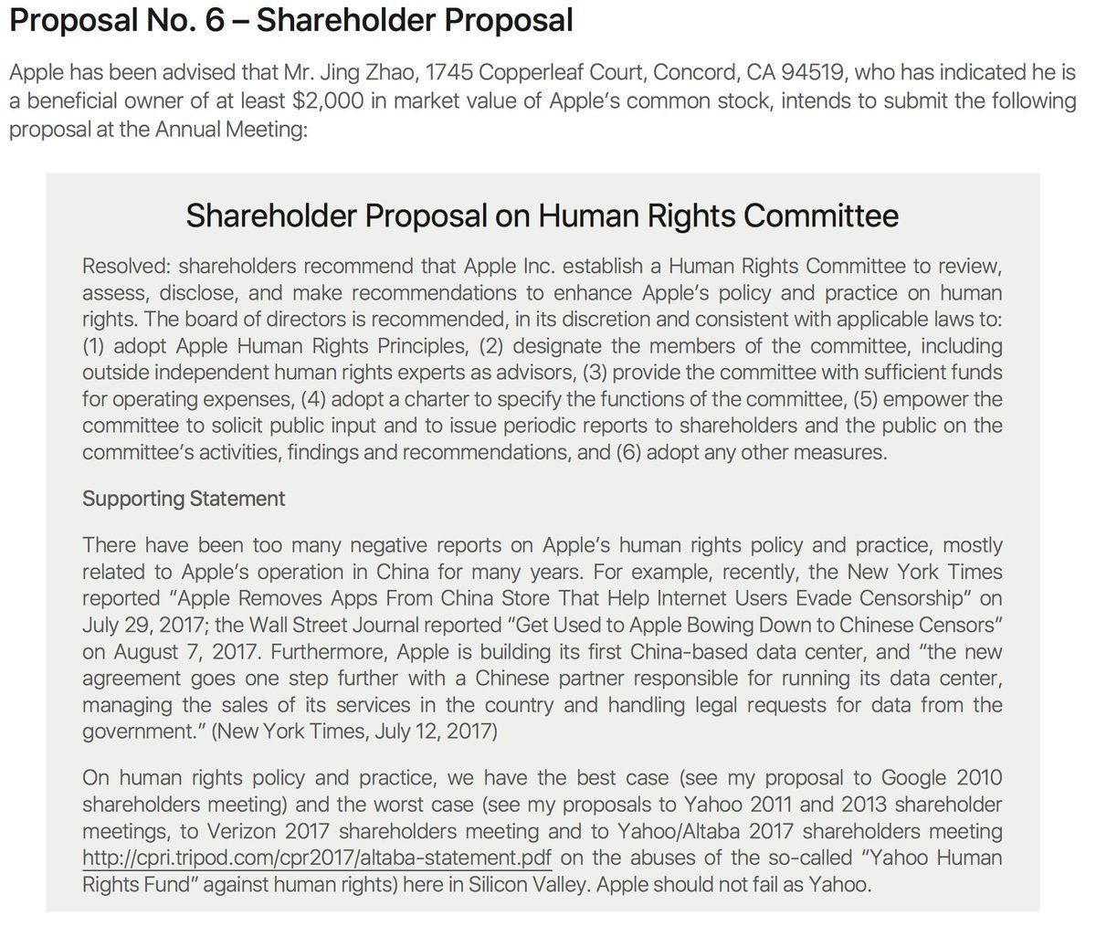 If you have any Apple stock, vote in this year’s annual shareholder meeting. The issue on the table: a proposal to establish a human right committee. The board recommends voting against. I recommend voting for. files.shareholder.com/downloads/AAPL/5654593168x0x966568/E199AFD4-4BD8-48D8-9CEB-47141C91899B/Apple_2018_Proxy_Statement.pdf